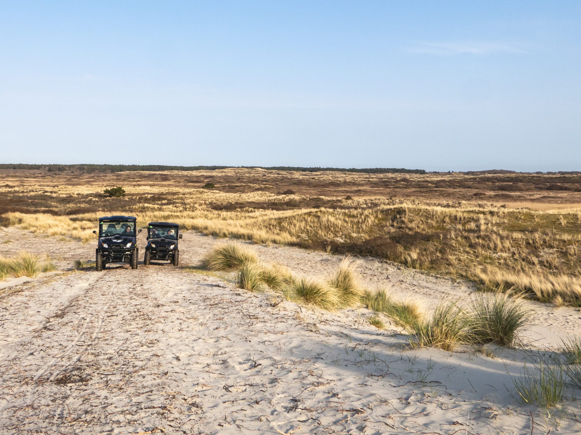 In de vroege ochtend of avond, als heel Terschelling óf nog in bed ligt óf aan de maaltijd zit, trekt Maarten Sjoers er met zijn gasten op uit. ‘Op die tijdstippen kom je weinig mensen tegen en zijn de dieren het meest actief.’ Als enige op het eiland heeft Maarten toestemming van Staatsbosbeheer om met zijn 100% elektrische wagentjes de natuurgebieden in te trekken.