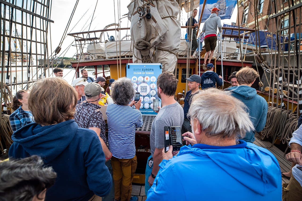 Tall Ship Bark EUROPA is een echte ‘ocean wanderer’. Haar thuishaven is Scheveningen, maar daar is ze zelden. Wanneer ze wel in Nederland is, wordt altijd geprobeerd om zoveel mogelijk mensen en fans te betrekken bij het verhaal van het schip en het bewustzijn op het gebied van duurzaamheid en bescherming van de oceanen te vergroten. Er zijn vaak onderzoekers en wetenschappers aan boord die tijdens de zeilreis projecten uitvoeren. De EUROPA was één van de schepen die te bewonderen was tijdens de Tall Ships Races 2022 in Harlingen. Hier werd de aftrap gegeven van de Bark EUROPA Clean-up Week. De actie bestaat uit twee onderdelen. Gedurende de zeilreis van het schip naar haar volgende bestemming (Antwerpen) wordt zoveel mogelijk plastic afval uit de Waddenzee en Noordzee gevist. Iedereen kan vanuit zijn of haar eigen woonplaats meedoen met de Clean-up Bingo.